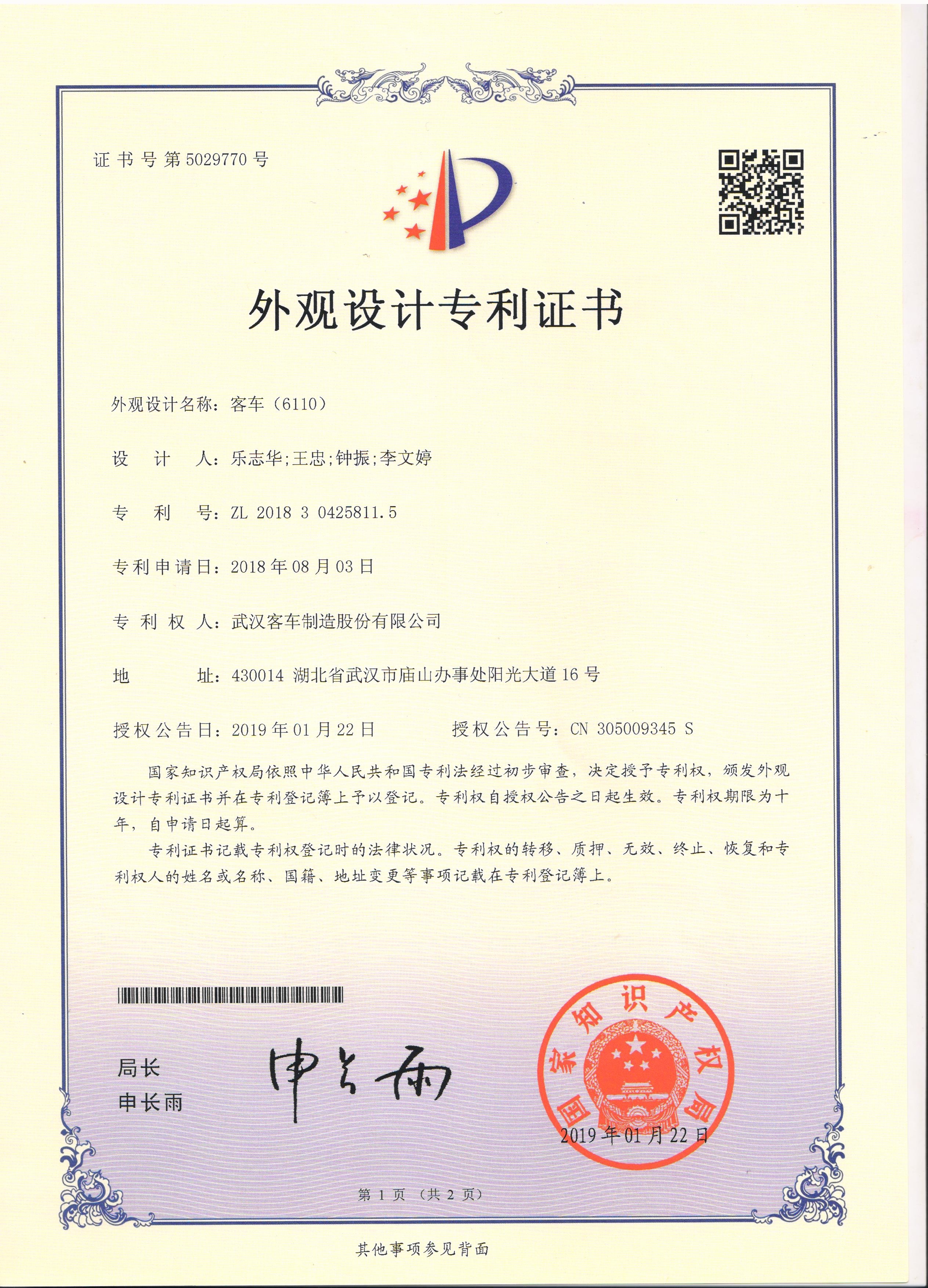 客車(6110)外觀設(shè)計(jì)專利